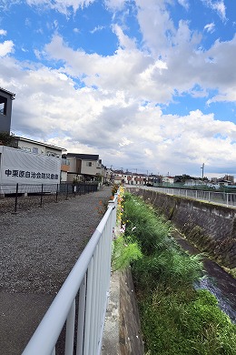 橋を渡って右(川沿い)に行きます。